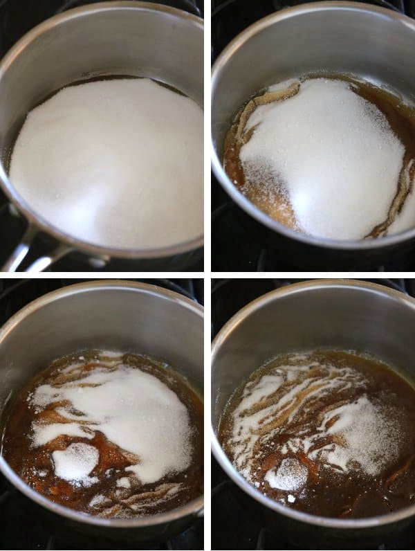 Before you make caramel, make sure your pot and utensils are completely clean, as any impurities can cause your sugar to recrystallize. Make sure that the water doesn 't boil before it has dissolved. Here are your best steps to success when making caramel, troubleshooting sugar, and how to fix crystallized caramel should it happen! The taste and texture resembles traditional caramel, we just got rid of the butter and boom! The first step is to melt sugar, which is called caramelization.